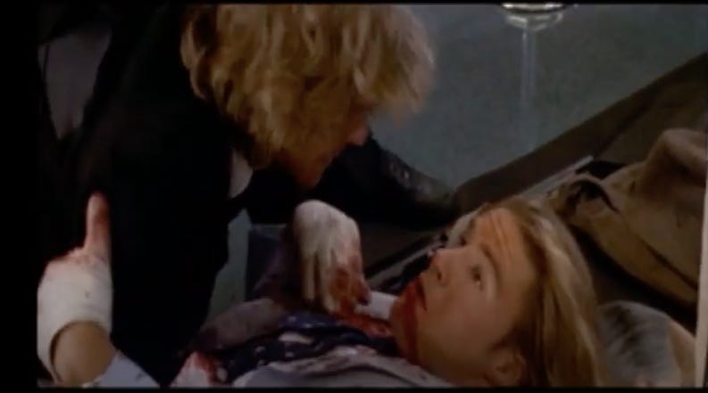 It is the one moment in the movie where the sociopathic Bodhi scans as a human with an emotional interior, a man who has tried hard to protect the wellbeing of his friends and failed (even as it is his own risk-junkie nature that got his smaller surf bro shot). Does Johnny want to have that moment of release with the object of his own pursuit, where he tends/kills Bodhi? Can he express understanding of Bodhi only by allowing him to kill himself? Can you only express love for someone when they are dying? Blah blah, toxic masculinity only allows vulnerability during moments of grief and violence. But as stupid as this movie is, I still find these moments stirring; they are the most emotionally honest parts of a movie that is about the desire to feel something, and the desire to hurt or undo people we are obsessed with, who are our doubles, or who desire similar sensation.